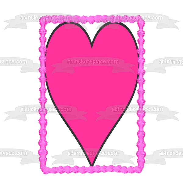 Decorate your Cake with this Cartoon themed Edible Cake Topper Image featuring a Pink Heart with Black Edges!
