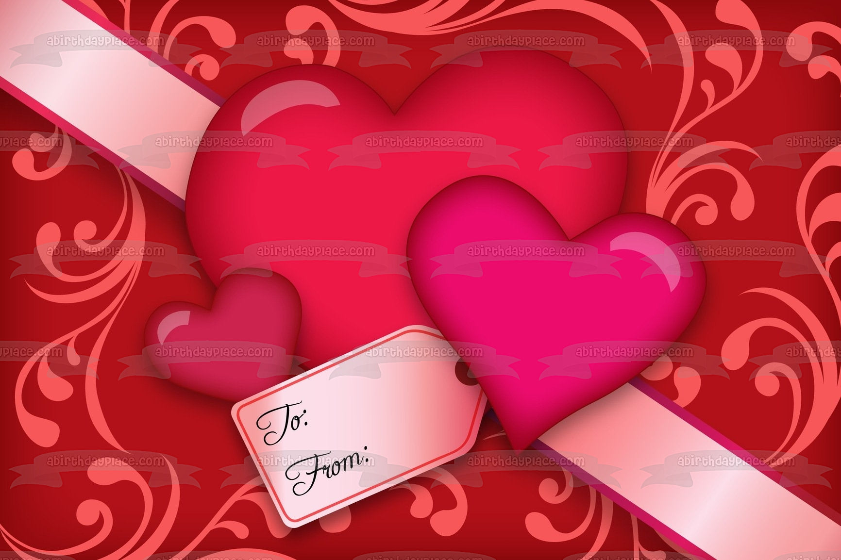 Happy Valentines Day Hearts Gift Box Label Edible Cake Topper Image ABPID13065