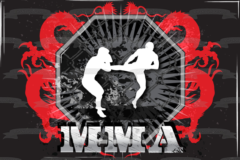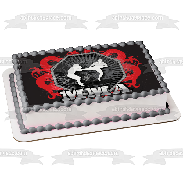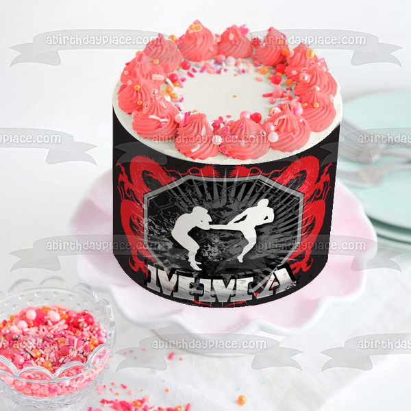 Decorate your Cake with this Sports themed Edible Cake Topper Image featuring the MMA logo!