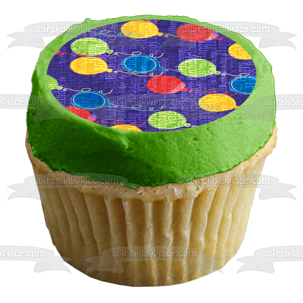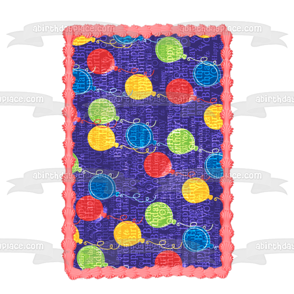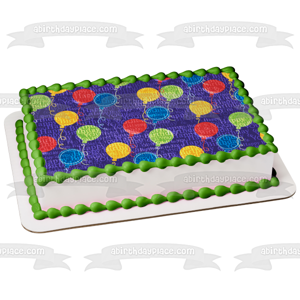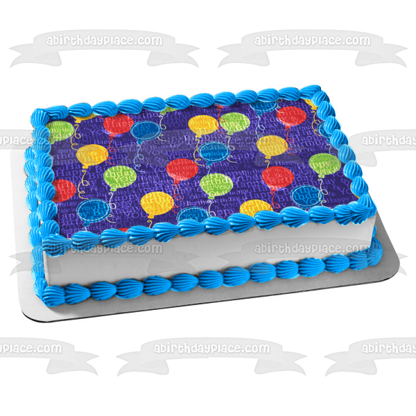 Decorate your Cake with this Happy Birthday themed Edible Cake Topper Image featuring Yellow, Green, Red and Blue Balloons with a Blue Background!