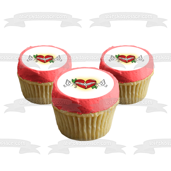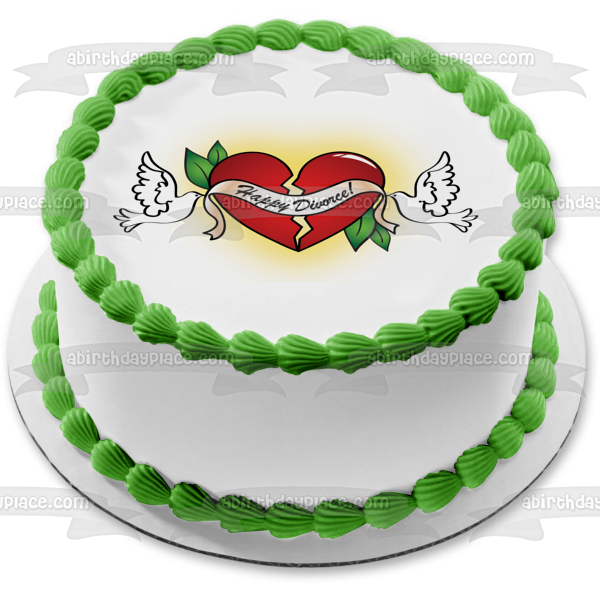 Decorate your Cake with this Happy Divorce Banner themed Edible Cake Topper Image featuring a Broken Red Heart and White Doves!