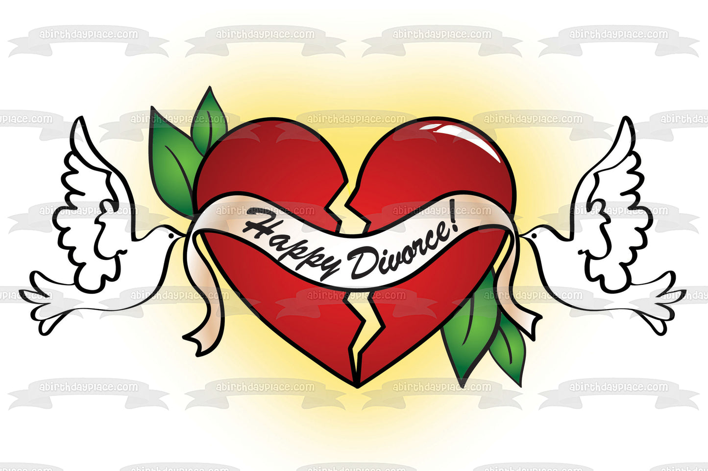 Happy Divorce Banner Broken Heart White Doves Edible Cake Topper Image ABPID13114