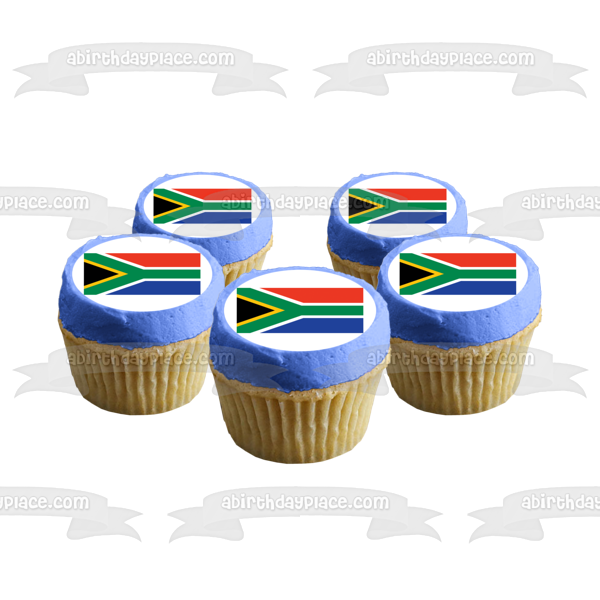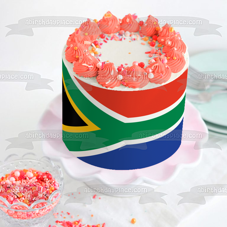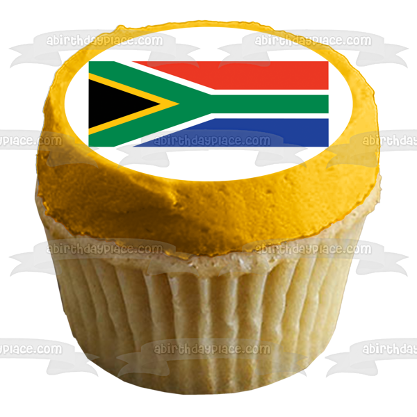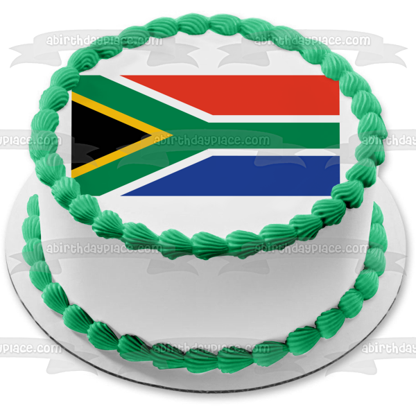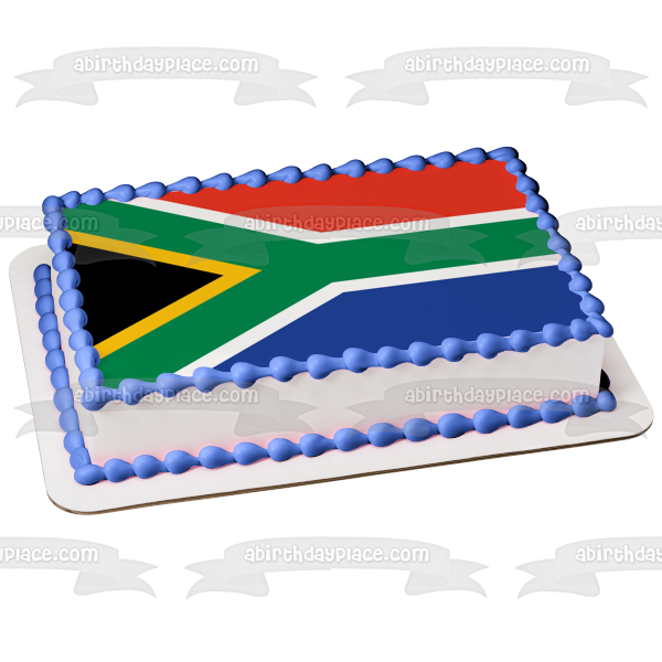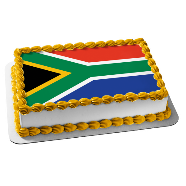 Decorate your Cake with this Flag themed Edible Cake Topper Image featuring The flag of South Africa has Colors that Represent other Countries including the Netherlands and United Kingdom!