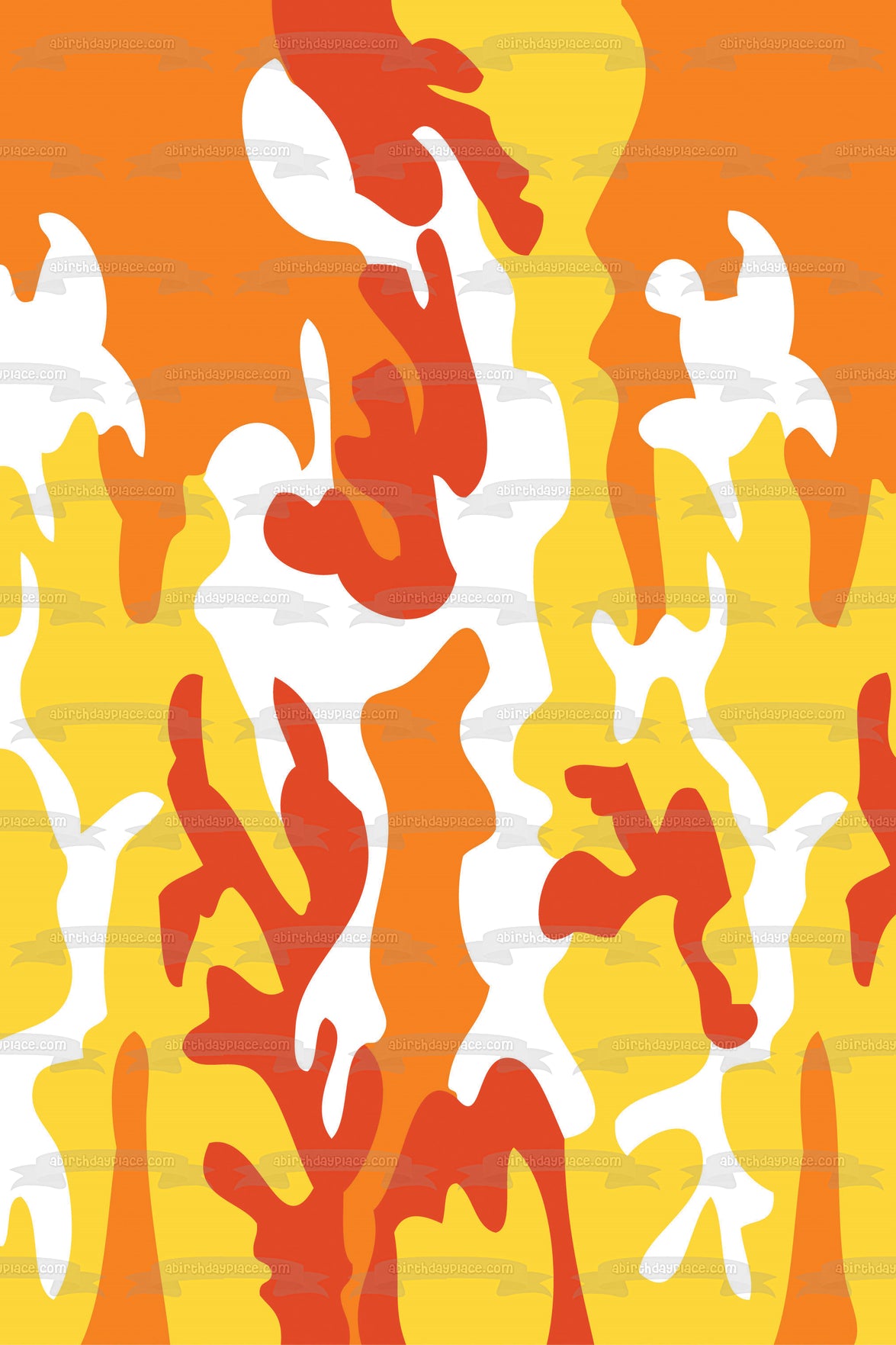 Camouflage Camo Yellow Orange Red White Edible Cake Topper Image ABPID13127