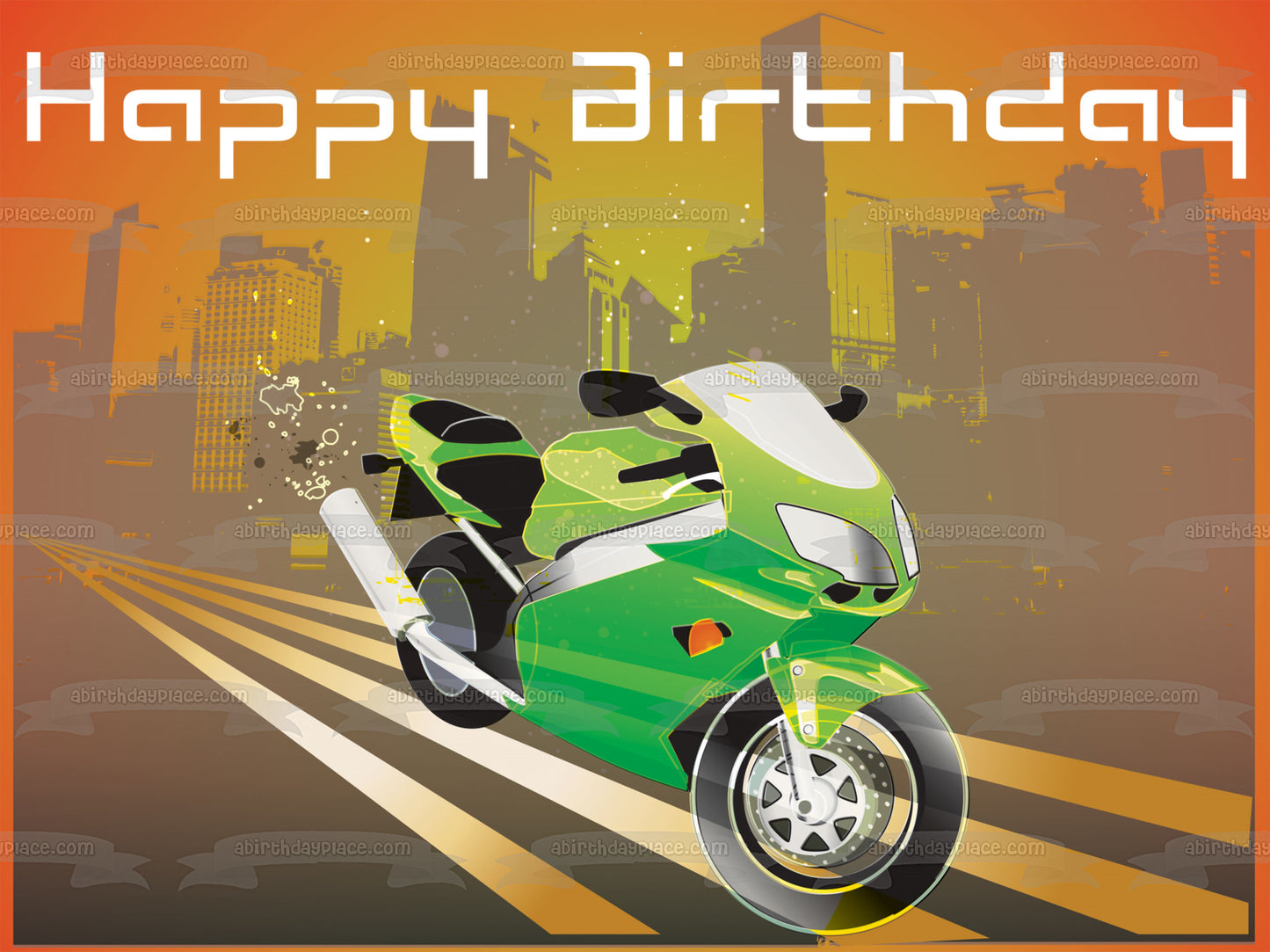 Happy Birthday Green Motorcycle Edible Cake Topper Image ABPID13167