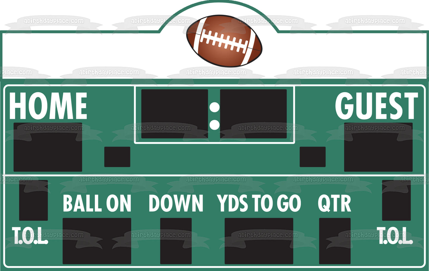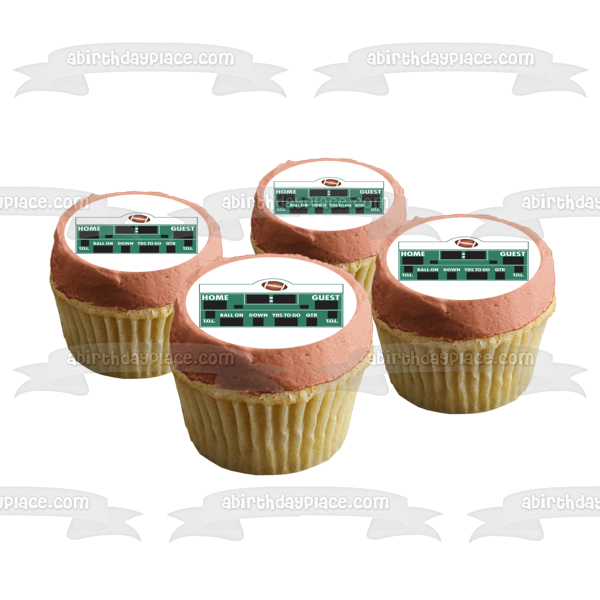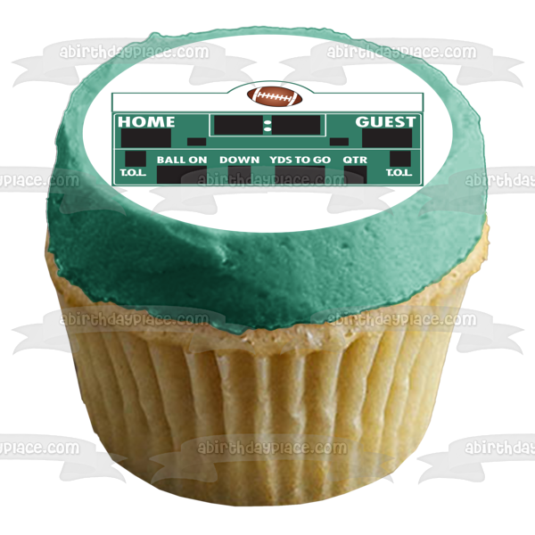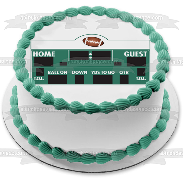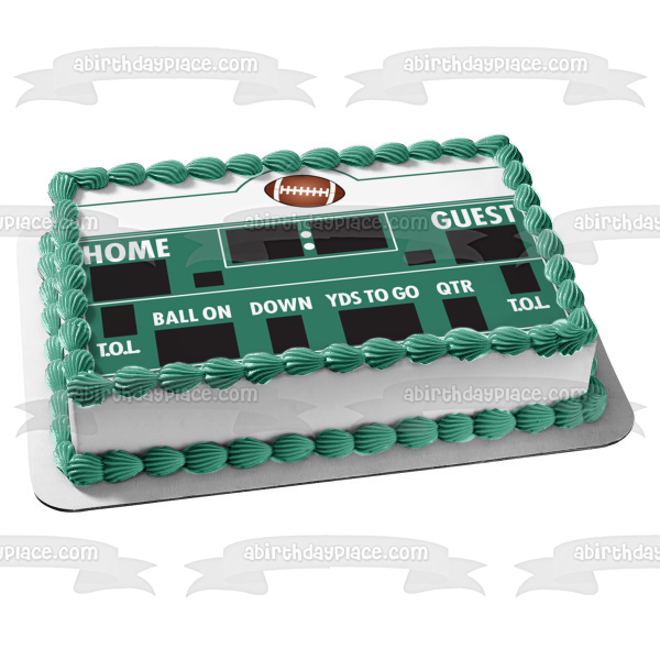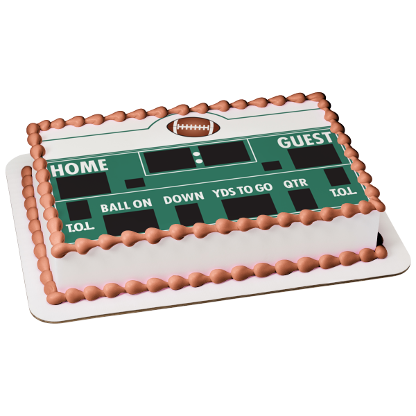 Decorate your Cake with this Sports themed Edible Cake Topper Image featuring a Football Scoreboard with Home and Guest Point Trackers and a Quarter Tracker!