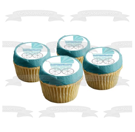 Decorate your cake with this Baby Shower themed Edible Cupcake Topper Images featuring Blue and Pink Strollers!