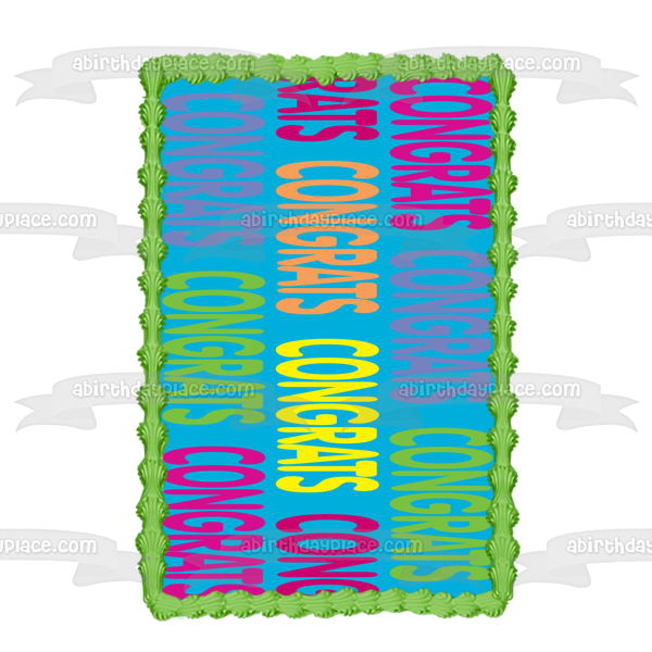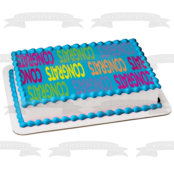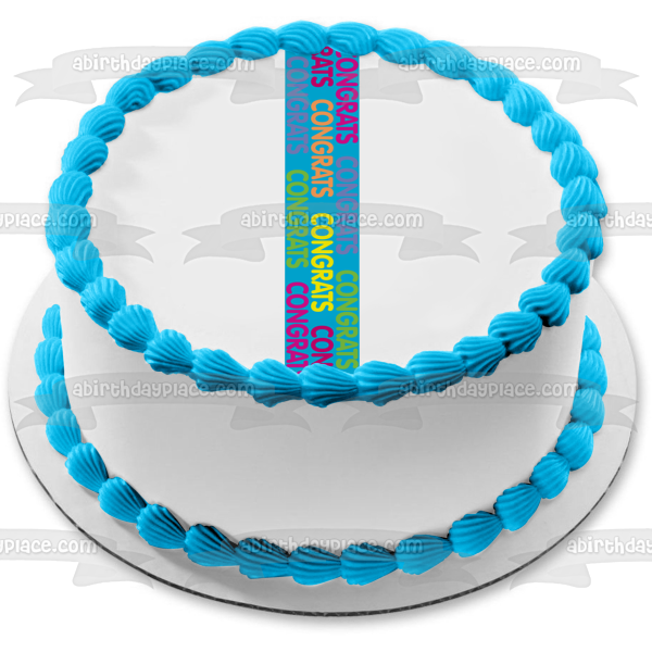 Decorate your Cake with this Congratulations themed Edible Cake Topper Image featuring Purple Congrats and a Blue Background!