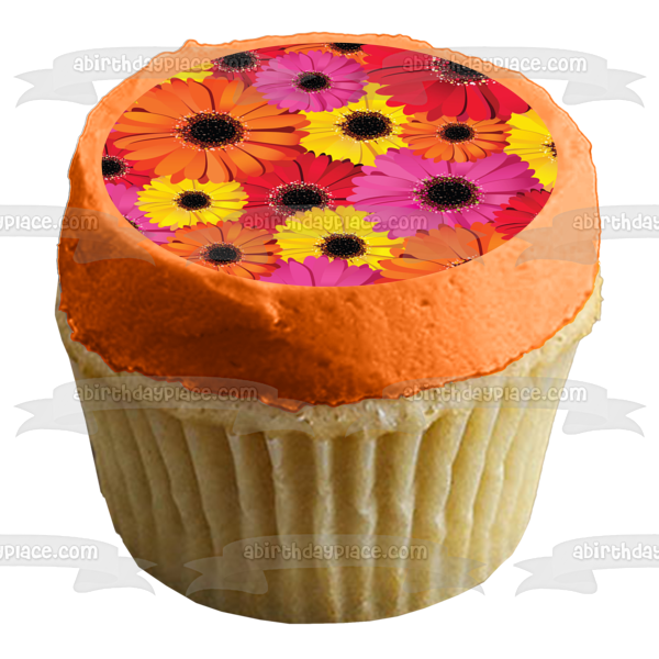 Flowers Red Pink Orange Yellow Sparkle Centers Edible Cake Topper Image ABPID13242