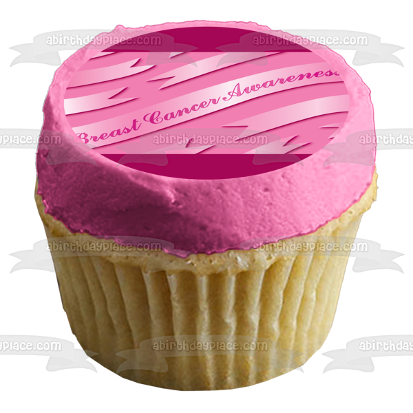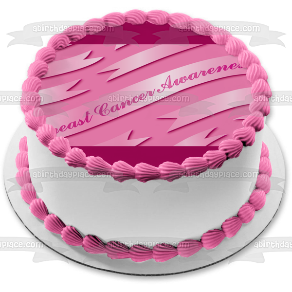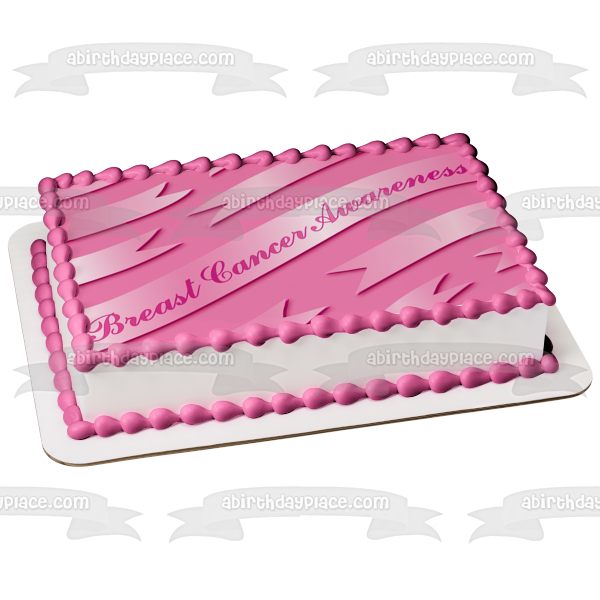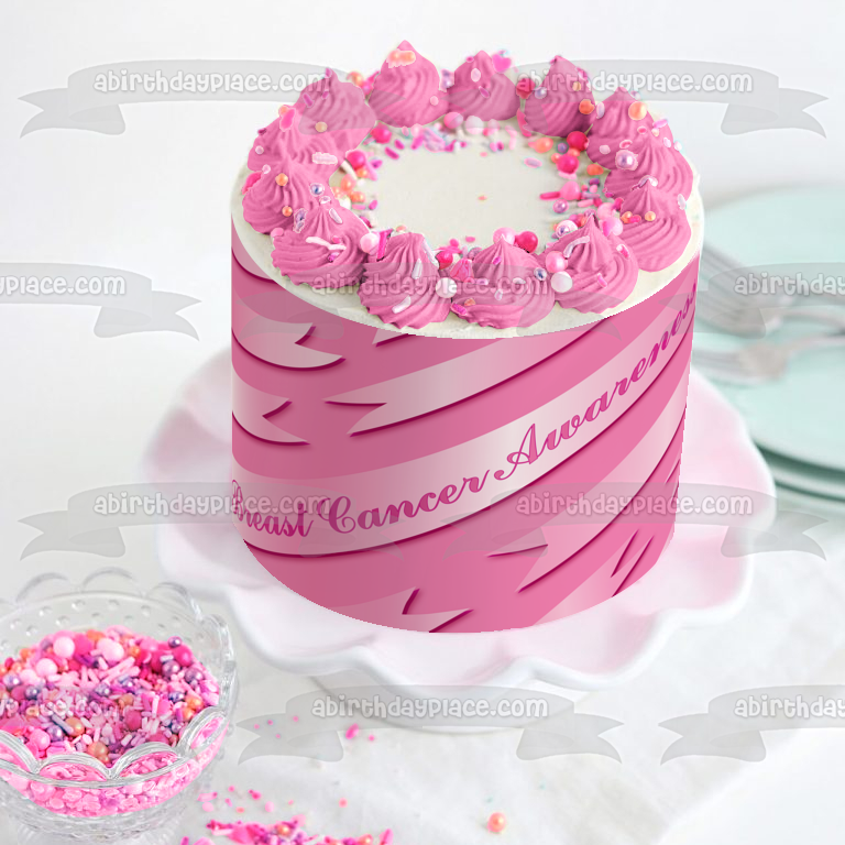Decorate your Cake with this Breast Cancer Awareness themed Edible Cake Topper Image featuring Ribbon Banners!