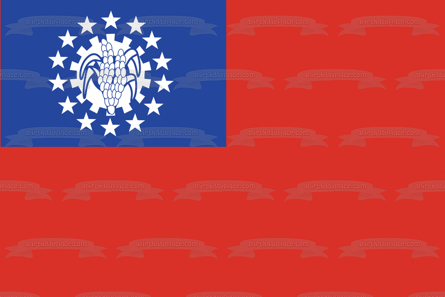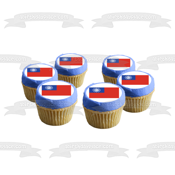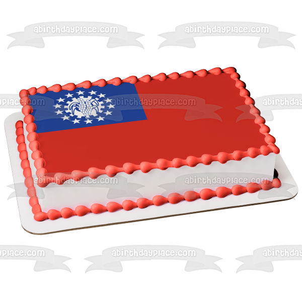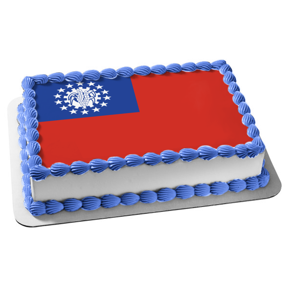 Flag of Myanmar Red White Blue Edible Cake Topper Image ABPID13279