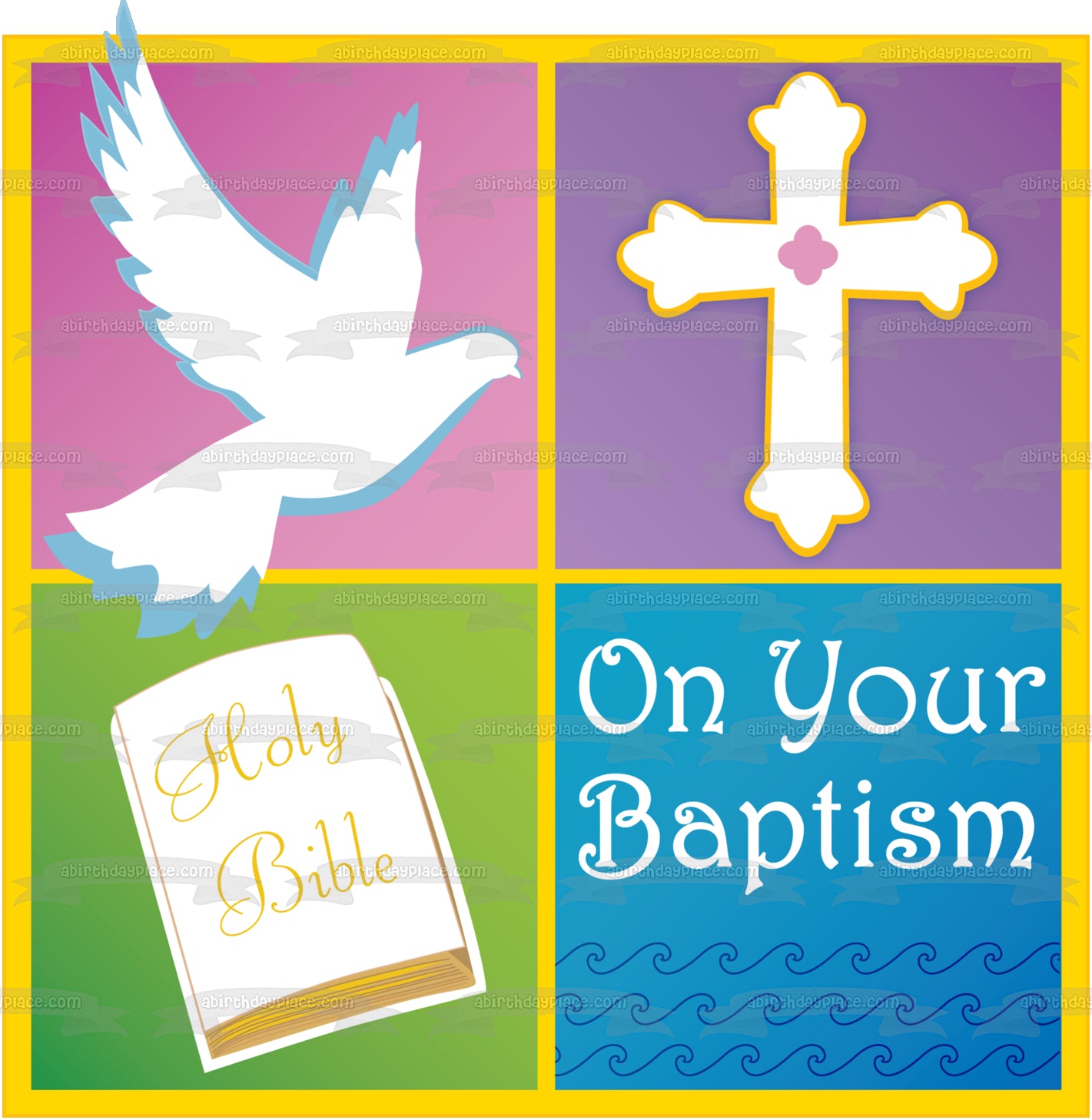 On Your Baptism Holy Bible Dove Cross Edible Cake Topper Image ABPID13296