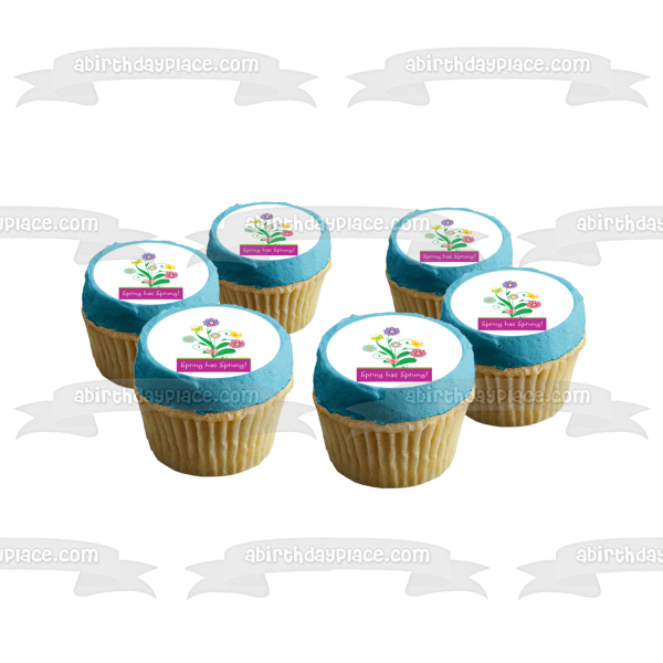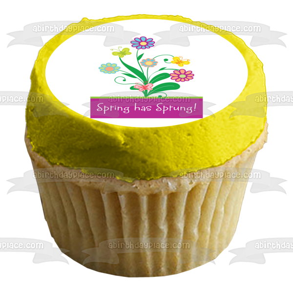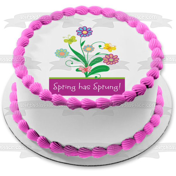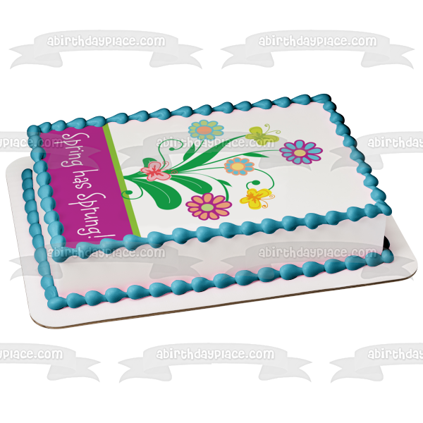 Decorate your Cake with this Spring has Sprung themed Edible Cake Topper Image featuring Flowers and Butterflies!