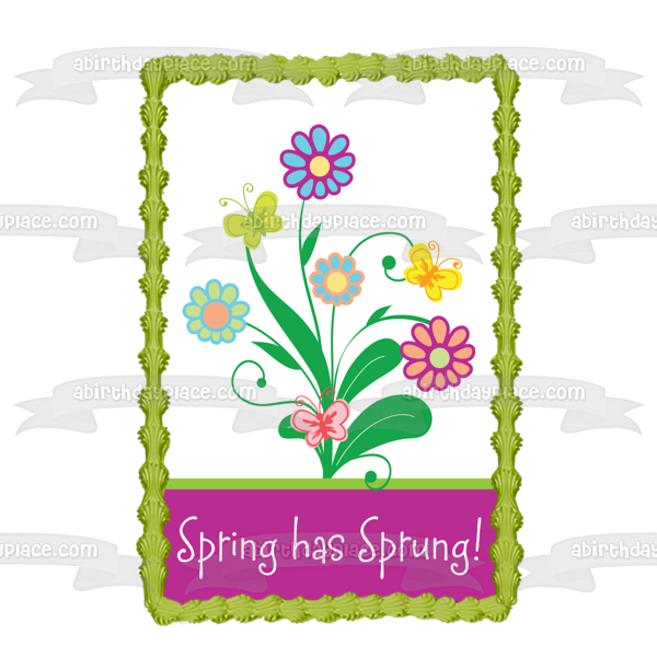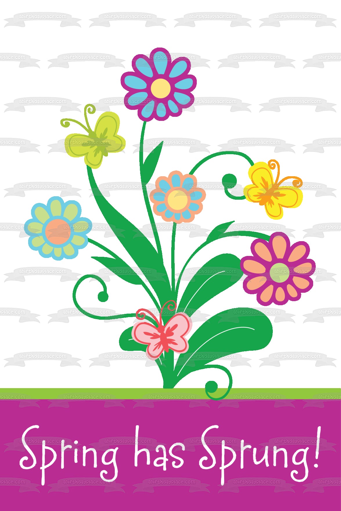Spring Has Sprung Flowers Butterflies Edible Cake Topper Image ABPID13330