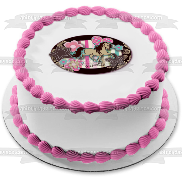Sweetie Girl Horse Heaerts Flowers Stars Edible Cake Topper Image ABPID13332
