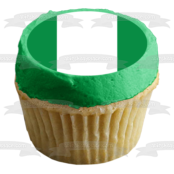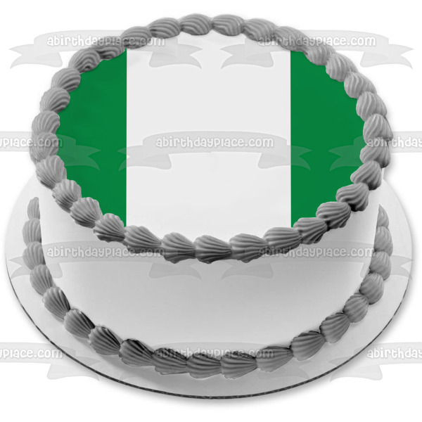 Decorate your Cake with this Flag of Nigeria themed Edible Cake Topper Image featuring the Two Green Stripes symbolize Nigeria's natural wealth, while the White band symbolizes Peace.