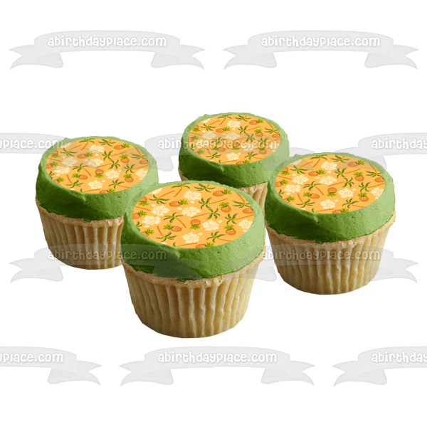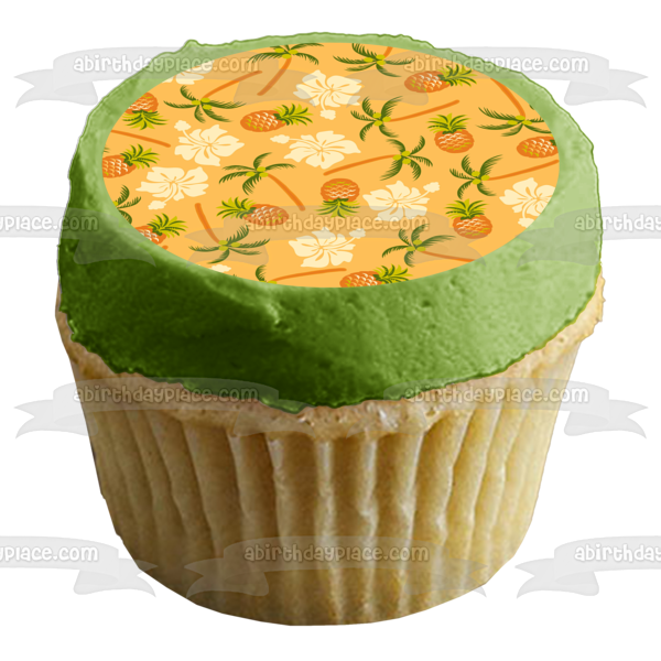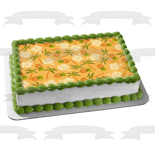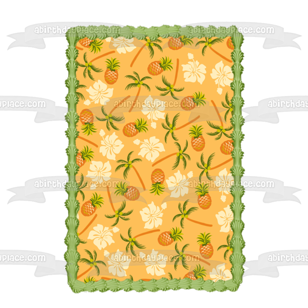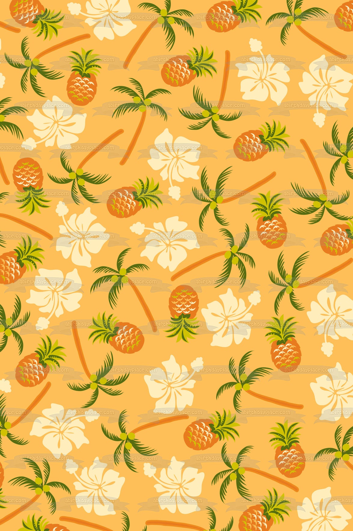 Hawaiian Pineapples Flowers Palm Trees Edible Cake Topper Image ABPID13336