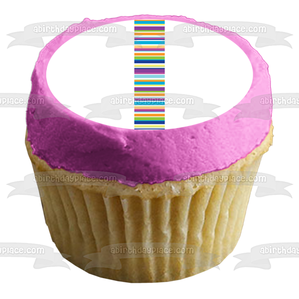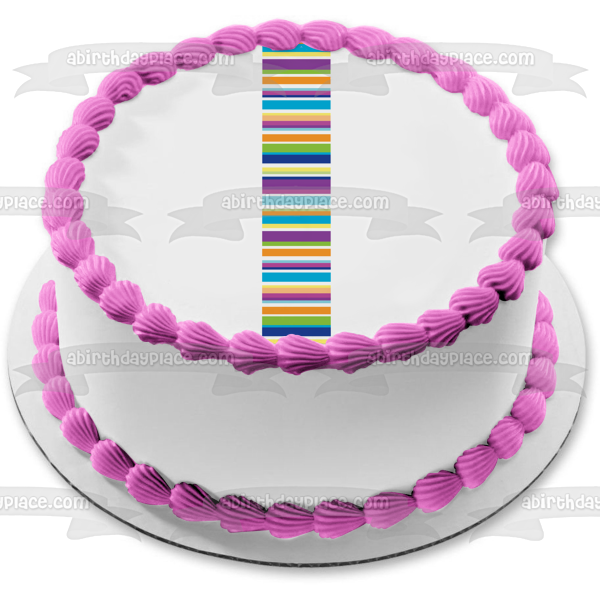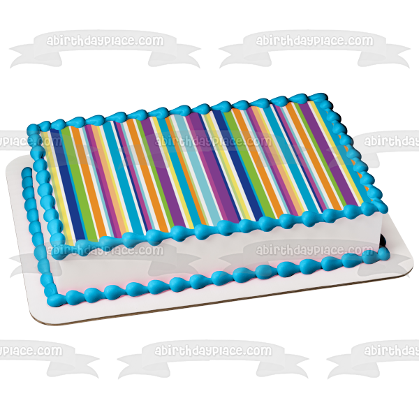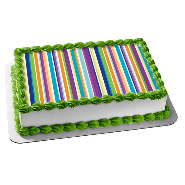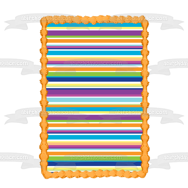 Decorate your Cake with this Horizontal Stripes themed Edible Cake Topper Image featuring Orange, Blue, Purple, Green and White Stripes!