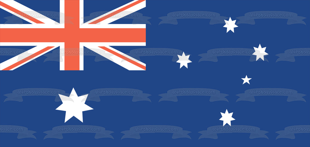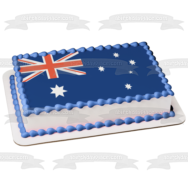 Decorate your Cake with this Flag of Australia themed Edible Cake Topper Image featuring the Red stands for St George's Cross of England, the White diagonal stands for St Andrew's Cross of Scotland and the Red diagonal symbolizes St Patrick's Cross of Ireland!