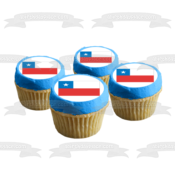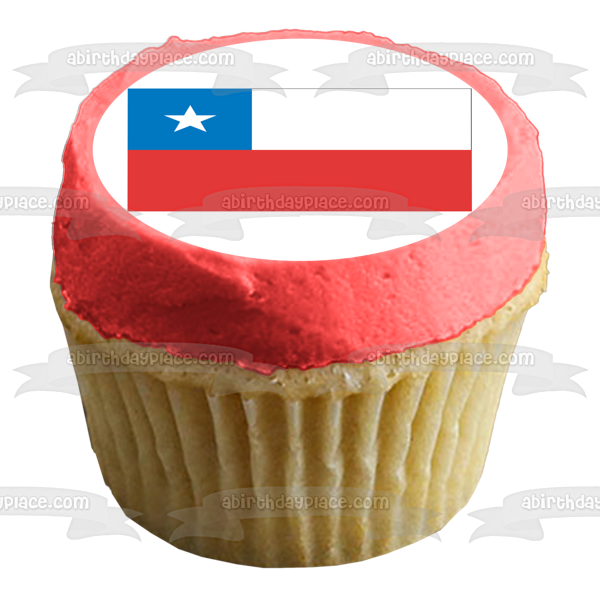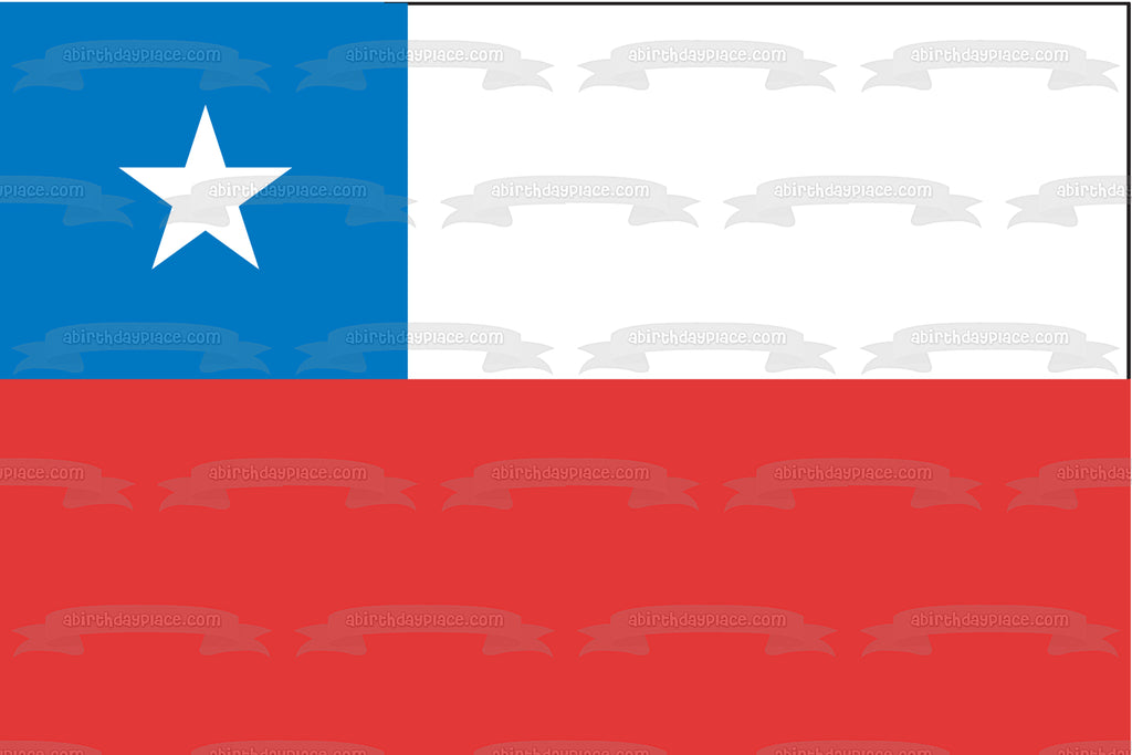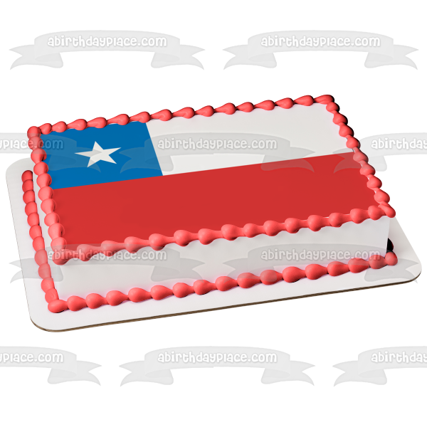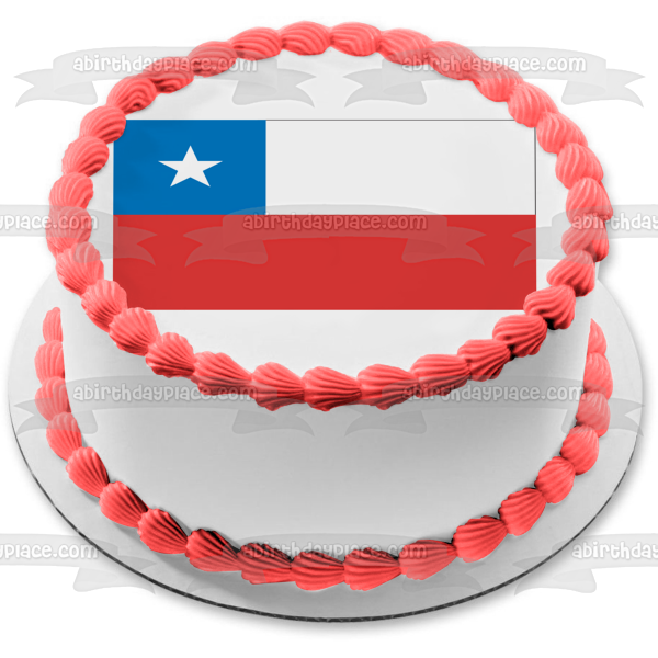 Decorate your Cake with this Flag of Chile themed Edible Cake Topper Image featuring the Blue Square represents the Sky, the White Stripe represents the Snow of the Andes mountains and the red symbolizes the Blood that was spilled Fighting for Freedom!