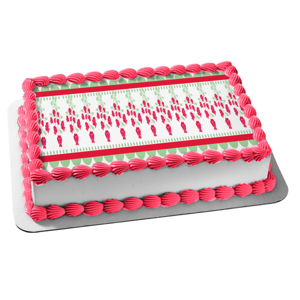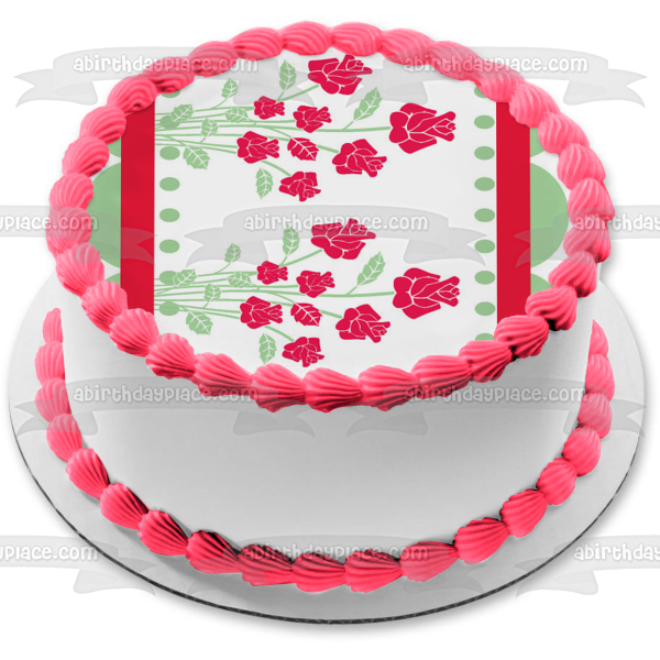 Decorate your Cake with this Roses and Leaves themed Edible Cake Topper Image featuring Polka Dots and a Pink Edge!