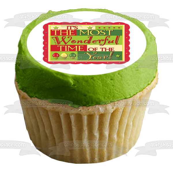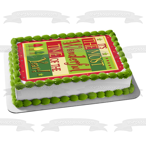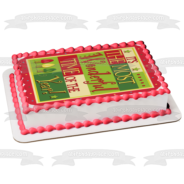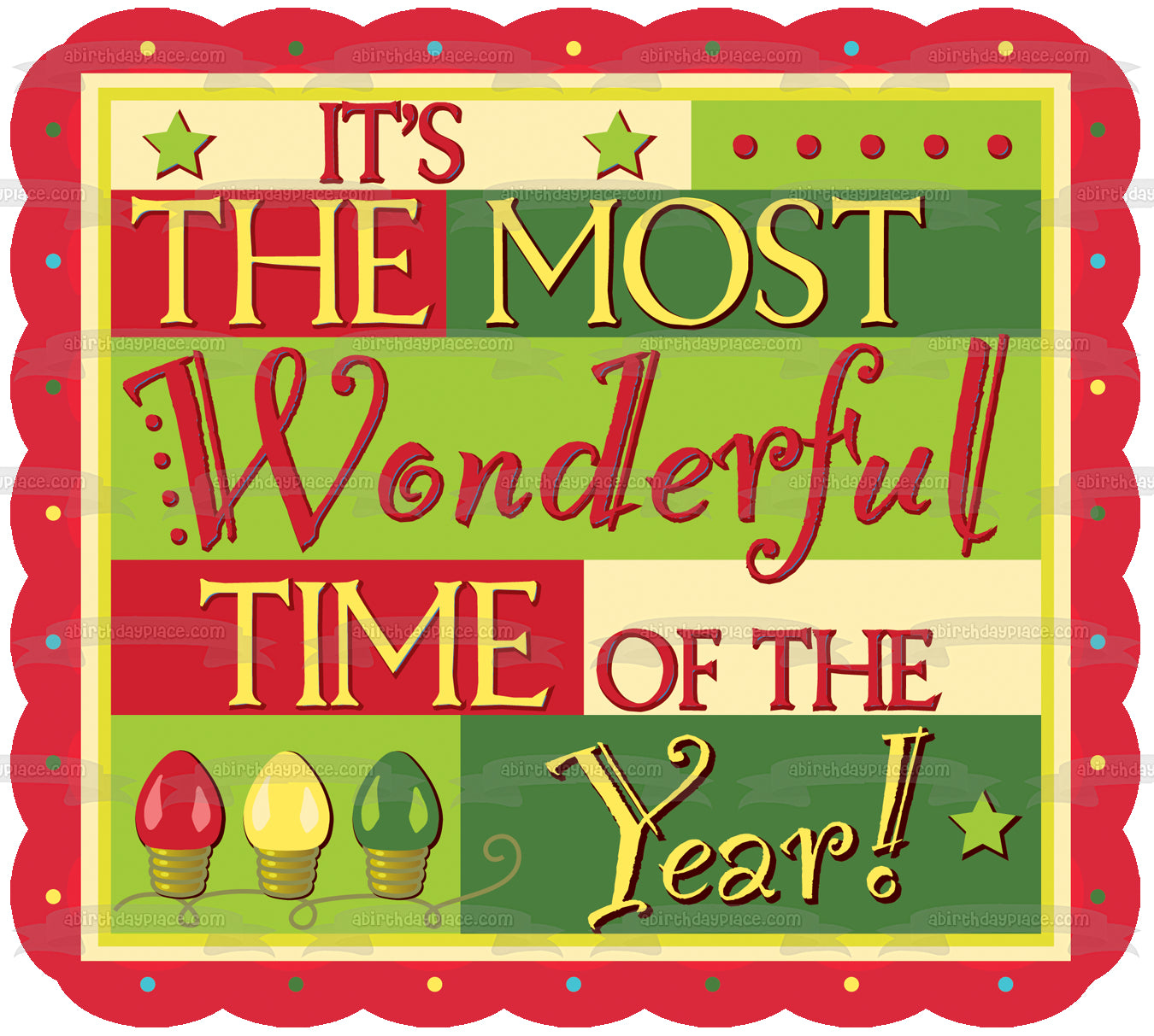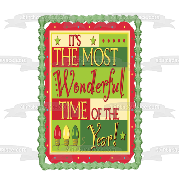 Decorate your Cake with this Its the Most Wonderful Time of the Year themed Edible Cake Topper Image featuring Christmas Lights and Stars!