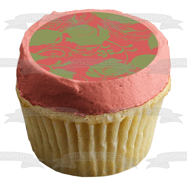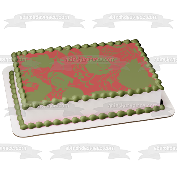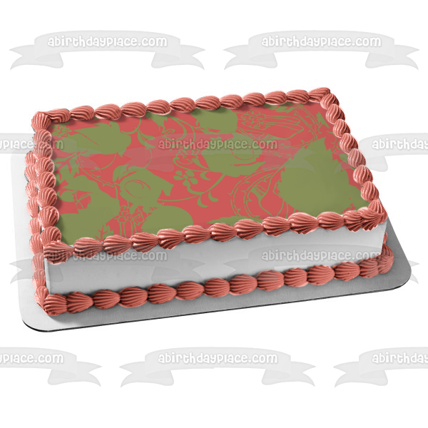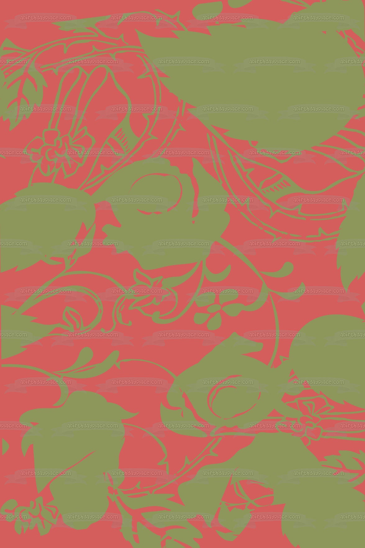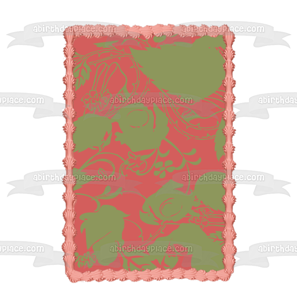 Decorate your Cake with this Green Leaves Pattern themed Edible Cake Topper Image featuring a Pink Background!