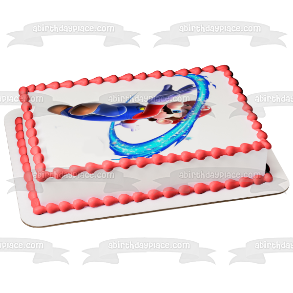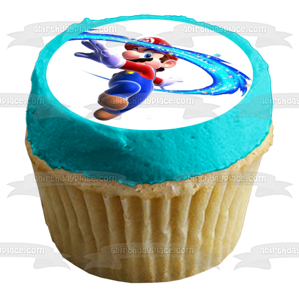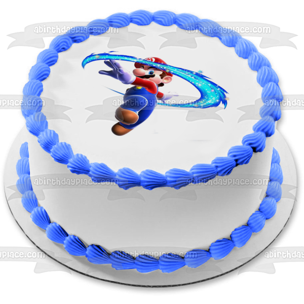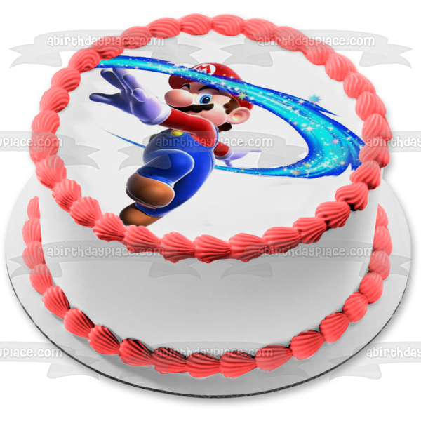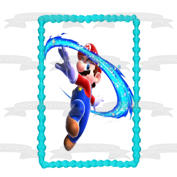 Decorate your Cake with this Super Mario Brothers themed Edible Cake Topper Image featuring a Blue Starry Swirl!