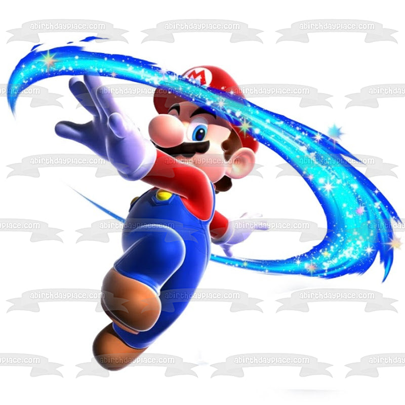 Super Mario Brothers Blue Starry Swirl Edible Cake Topper Image ABPID13650