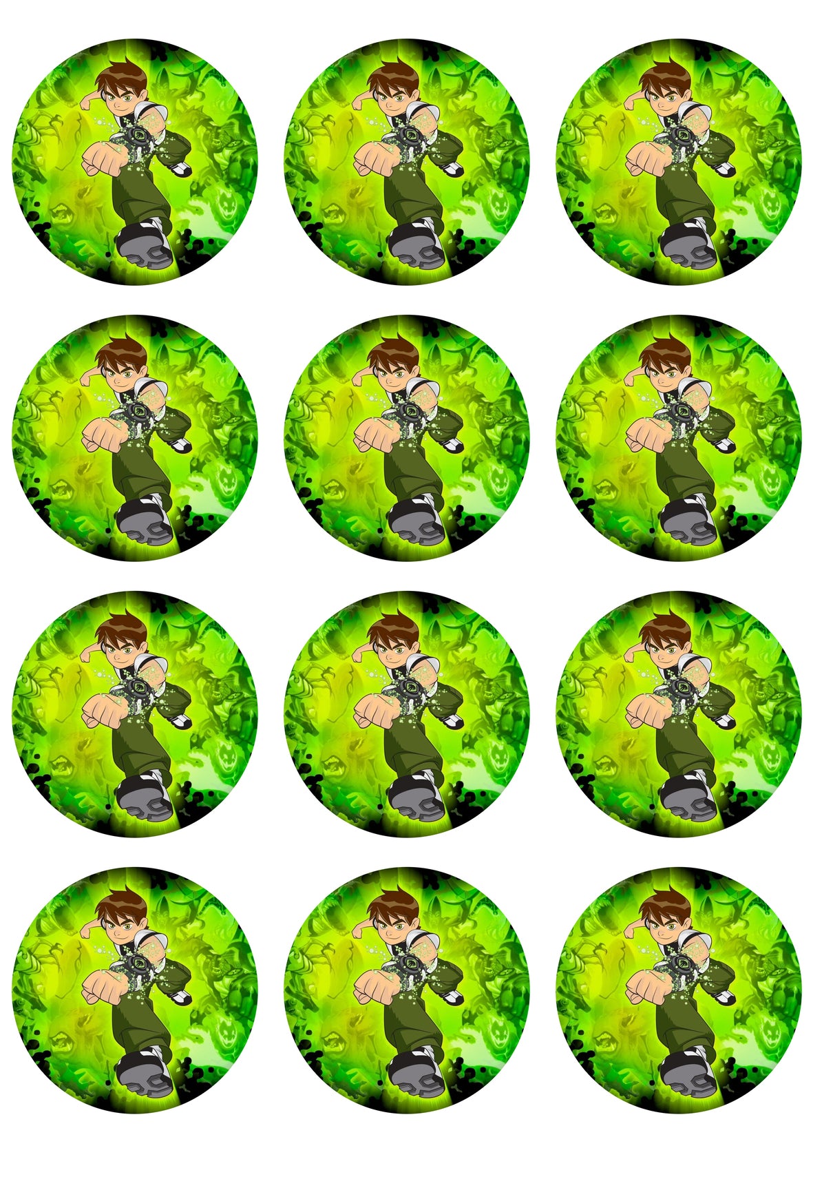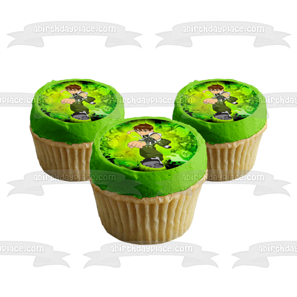 Decorate your Cupcakes with these Ben 10 themed Edible Cupcake Topper Images featuring Ben and a Green Background!