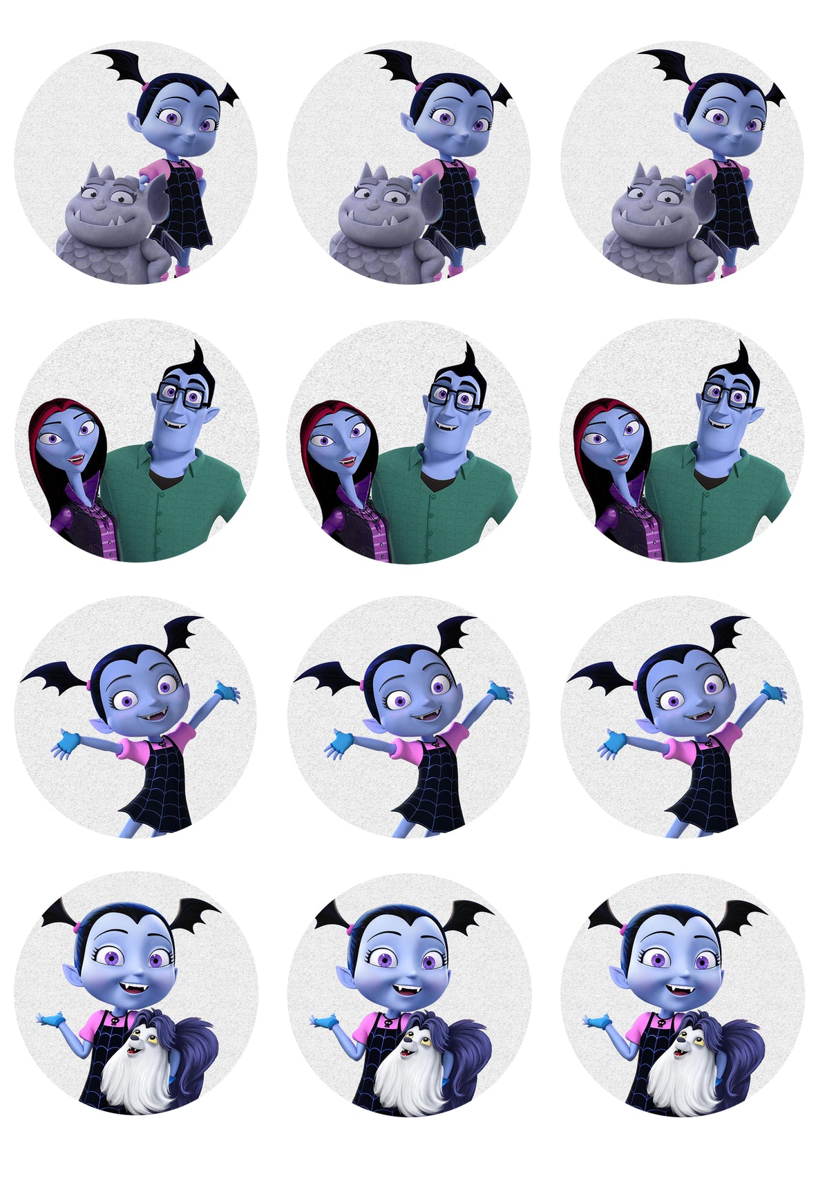 Decorate your Cupcakes with these Vampirina themed Edible Cupcake Topper Images featuring Gregoria, Mr. Hauntly and Mrs. Hauntly!