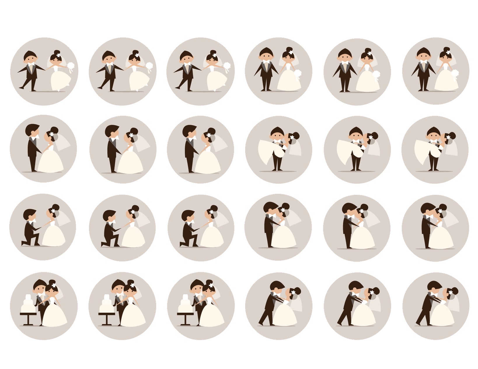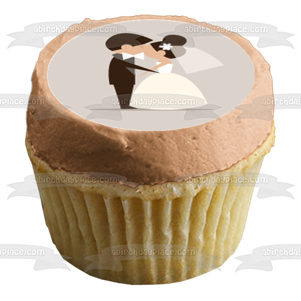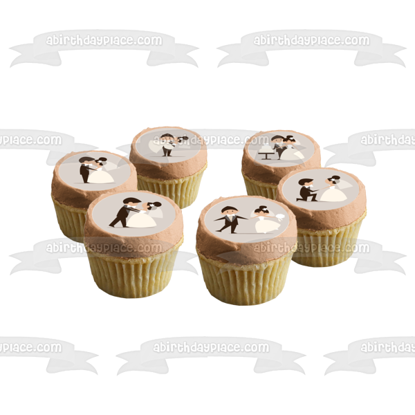 Decorate your Cupcakes with these Wedding themed Edible Cupcake Topper Images featuring the Groom Holding the Bride, them Kissing, Cutting the Cake and the Groom Proposing!
