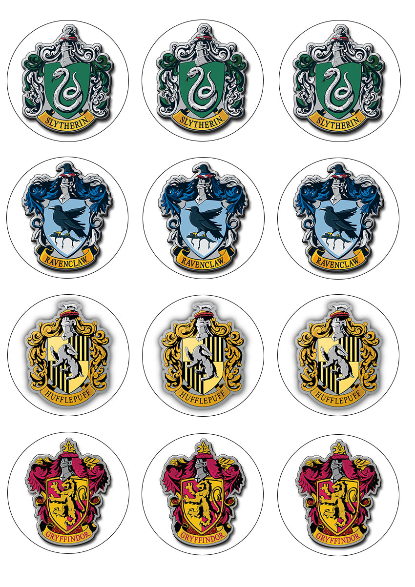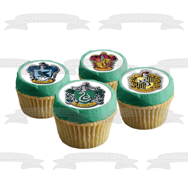 Harry Potter Hogwarts Crest Slytherin Ravenclaw Hufflepuff Gryffindor Edible Cupcake Topper Images ABPID14828