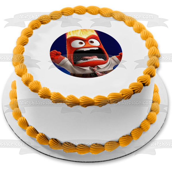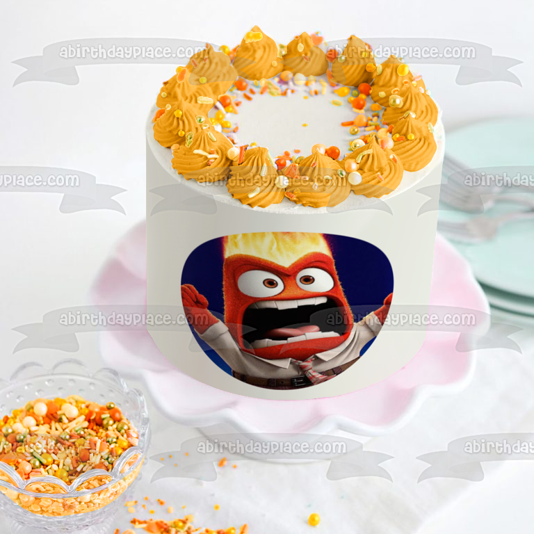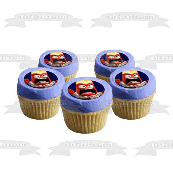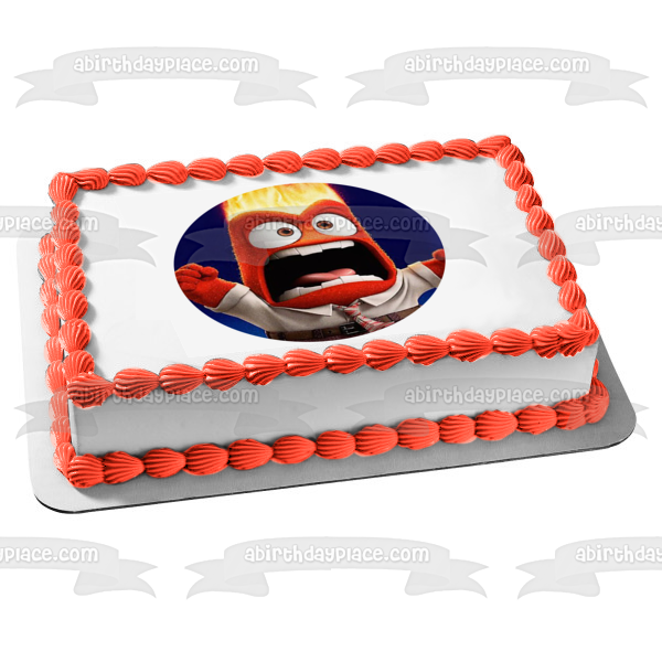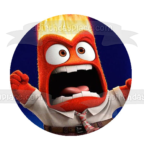 Decorate your Cake with this Inside Out themed Edible Cake Topper Image featuring Anger with a Blue Background!