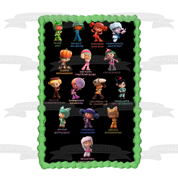 Wreck It Ralph Sugar Rush Kids Minty Zaki Swizzle Malarkey Jubileena Bing-Bing Edible Cake Topper Image ABPID15194