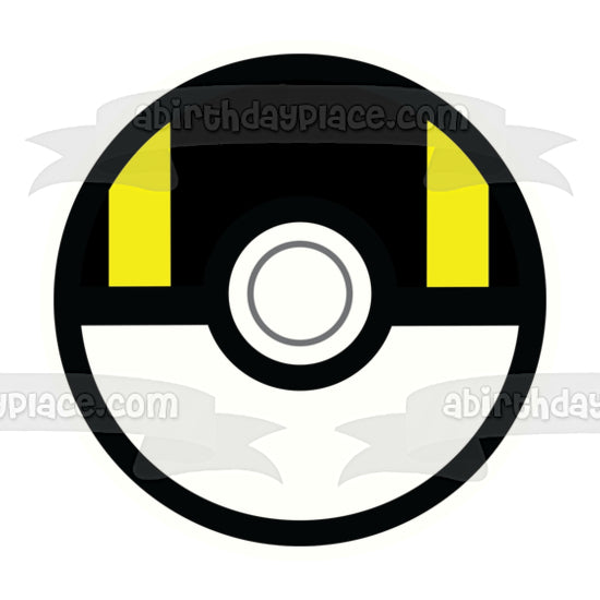Decorate your Cake with this Pokemon Poke Ball themed Edible Cake Topper Image featuring the Ultra Ball!