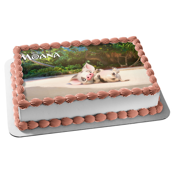 Decorate your Cake with this Disney themed Edible Cake Topper Image featuring Moana's Pig Pua on the Beach!