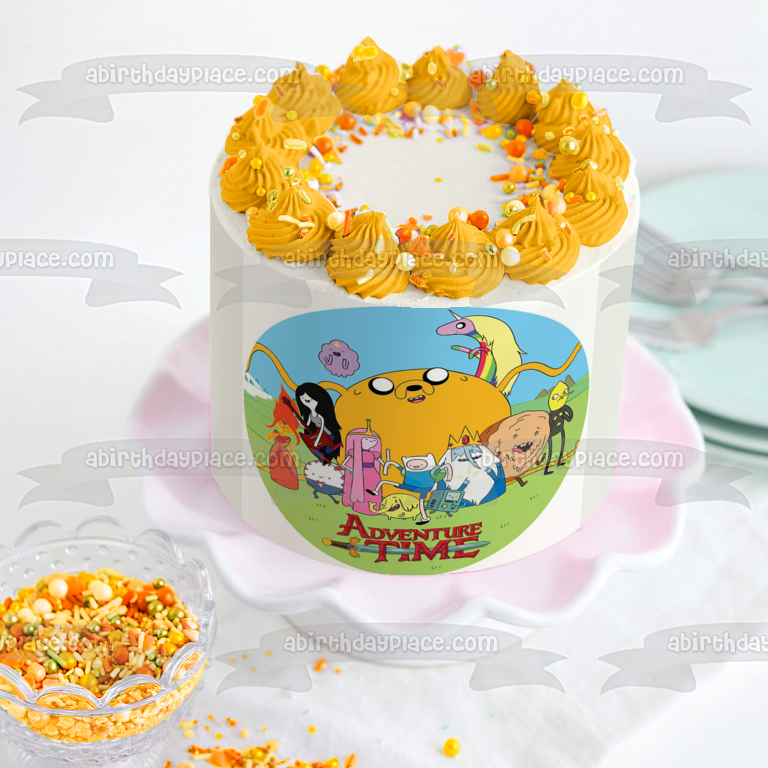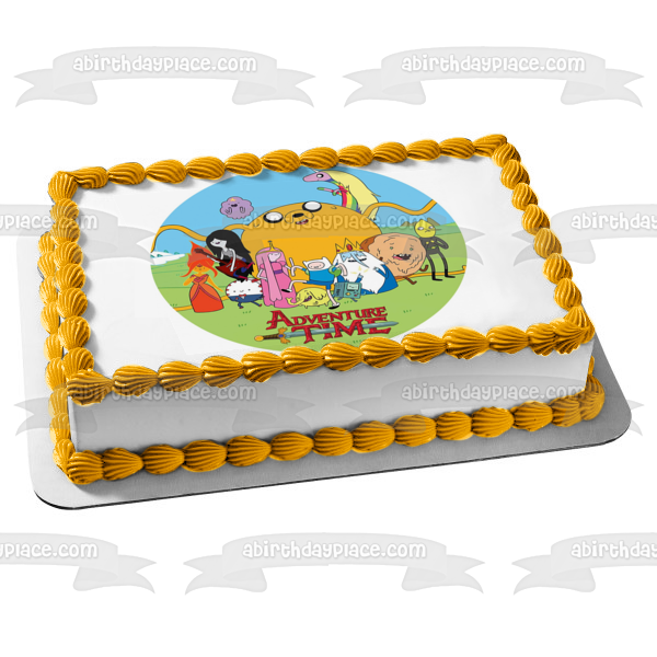 Decorate your Cake with this Adventure Time themed Edible Cake Topper Image featuring Finn, Jake the Dog, Princess Bubblegum and Marceline The Vampire Queen!