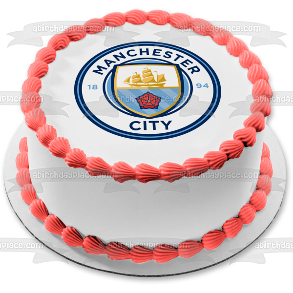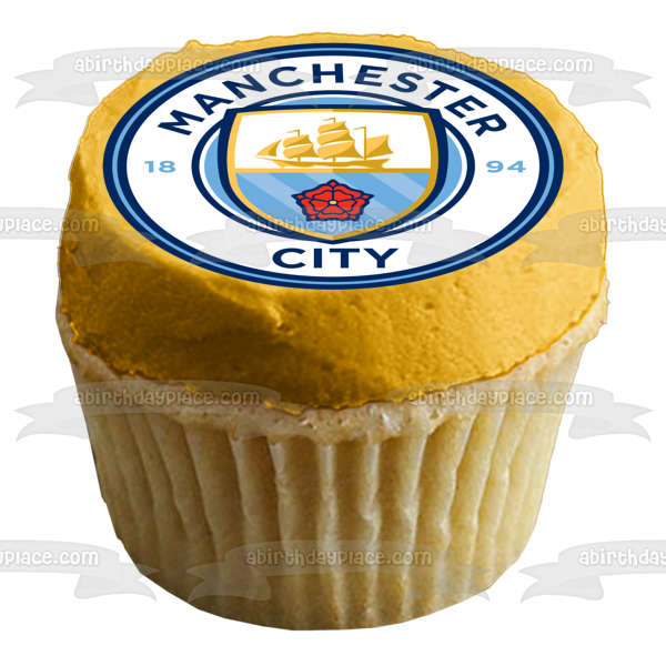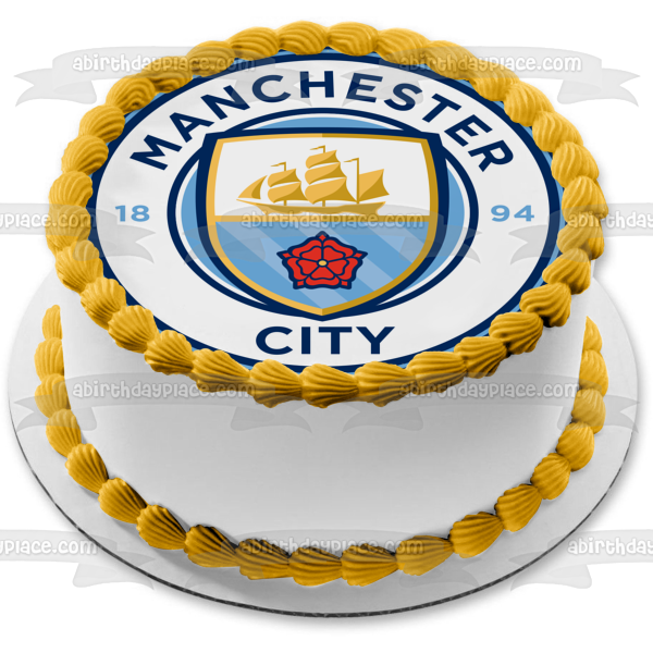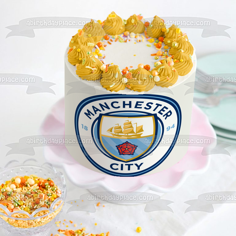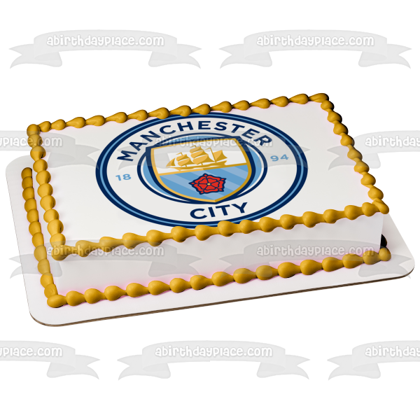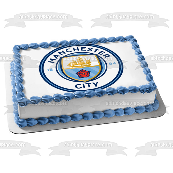Decorate your Cake with this Manchester City themed Edible Cake Topper Image featuring their Football Club Logo!