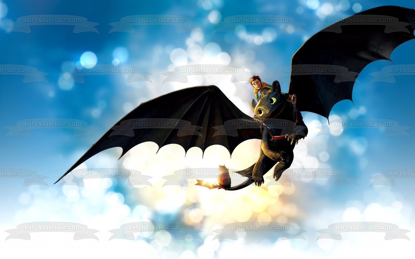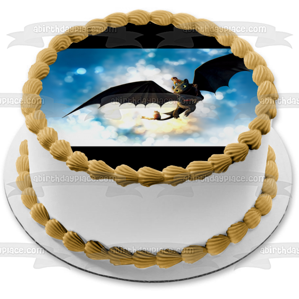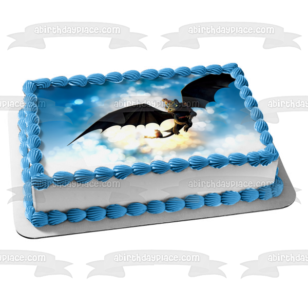 Decorate your Cake with this How to Train Your Dragon themed Edible Cake Topper Image featuring Toothless and Hiccup Flying!