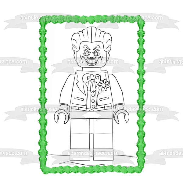 Decorate your Cake with this DC Comics themed Edible Cake Topper Image featuring The LEGO Joker in Black and White!