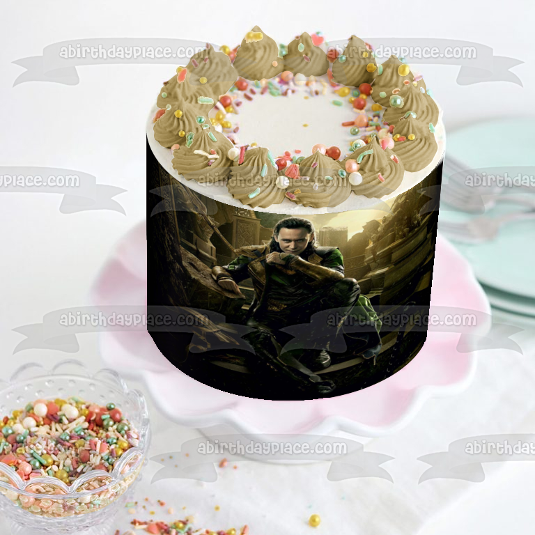 Decorate your Cake with this Marvel themed Edible Cake Topper Image featuring Loki!