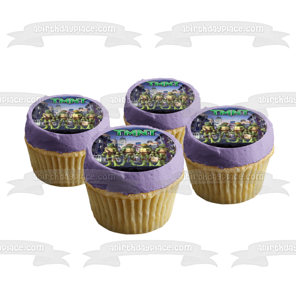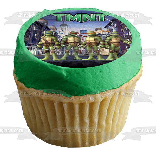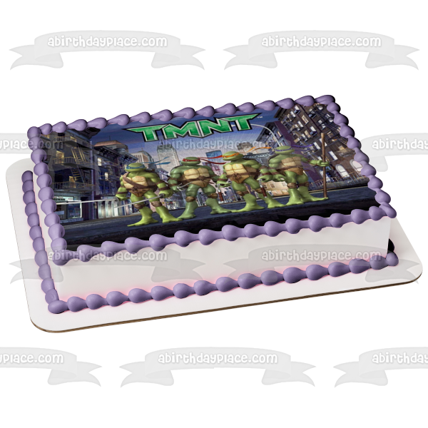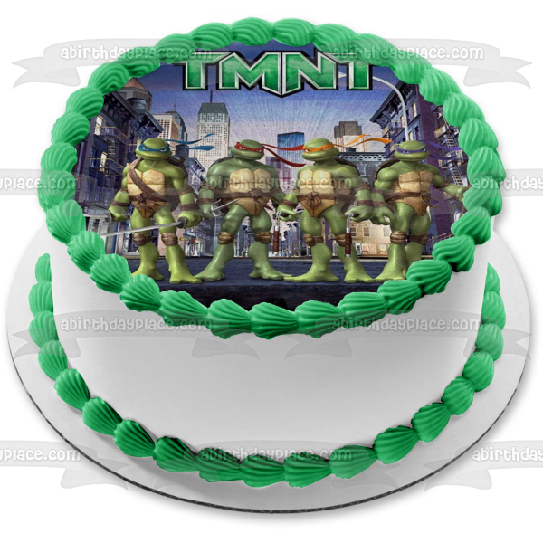 Decorate your Cake with this Teenage Mutant Ninja Turtles themed Edible Cake Topper Image featuring Donatello, Michaelangelo, Leonardo and Raphael with their Weapons Drawn!