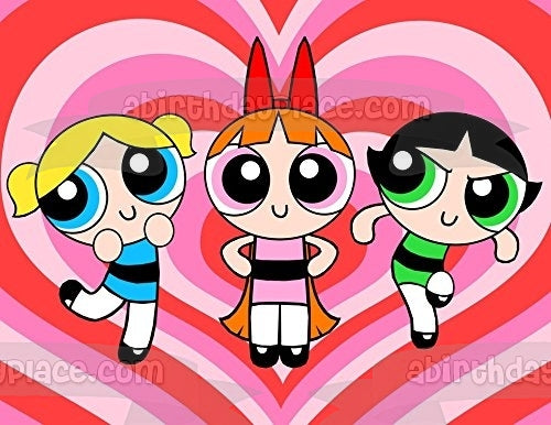 Power Puff Girls Blossom Bubbles Buttercup Hearts Background Edible Cake Topper Image ABPID24140