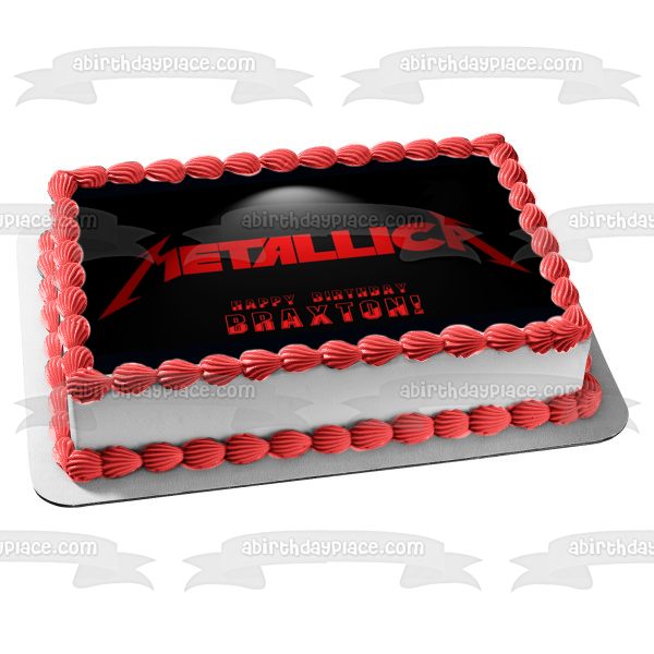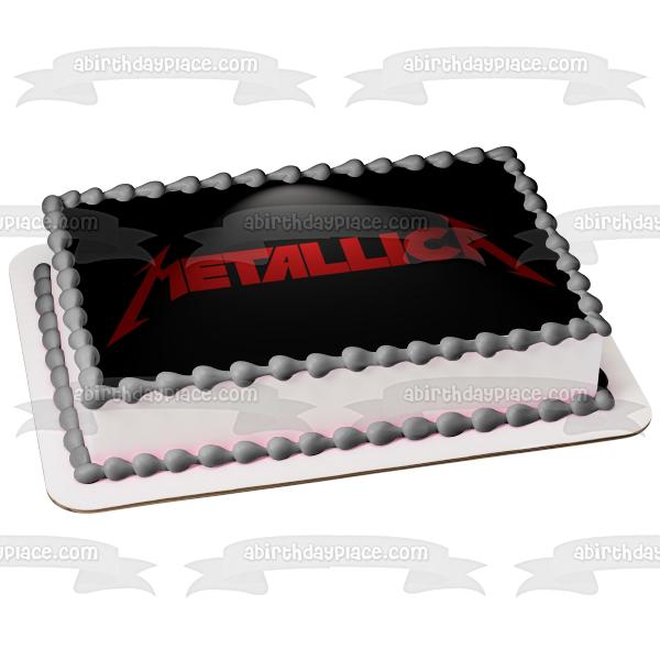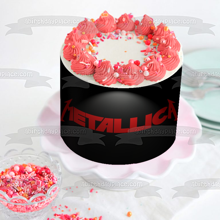 Decorate your Cake with this Metallica themed Edible Cake Topper Image featuring their Red Logo and a Black Background!
