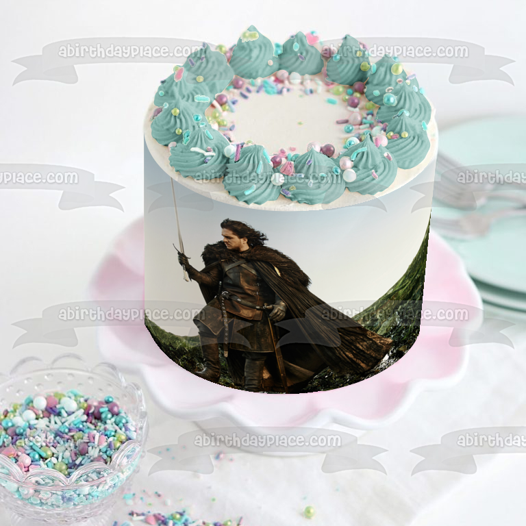 Decorate your Cake with this Game of Thrones themed Edible Cake Topper Image featuring John Snow on a Mountain!