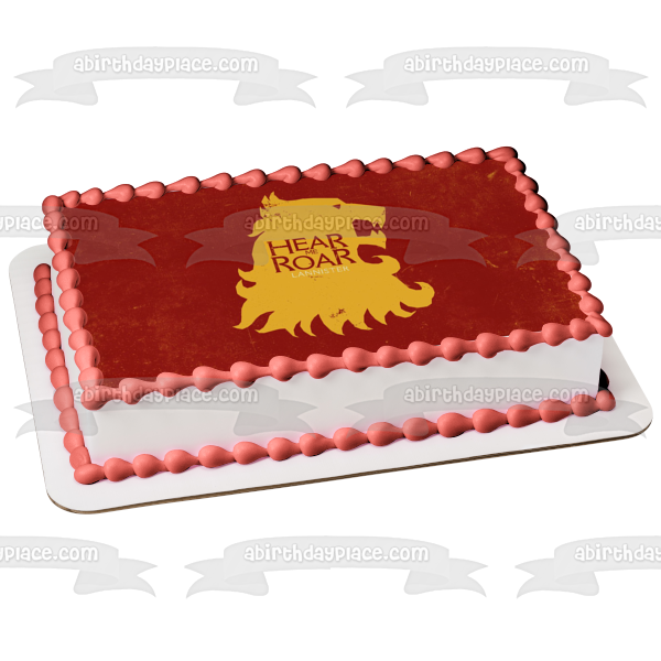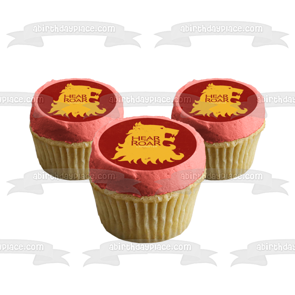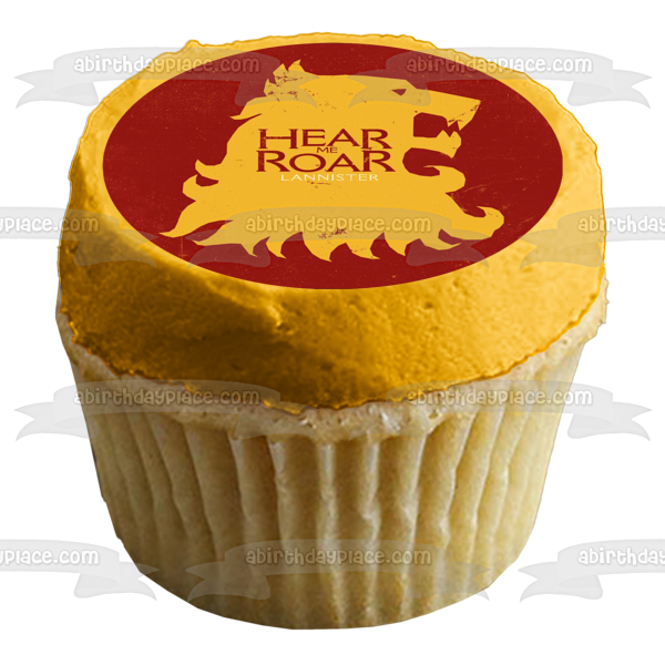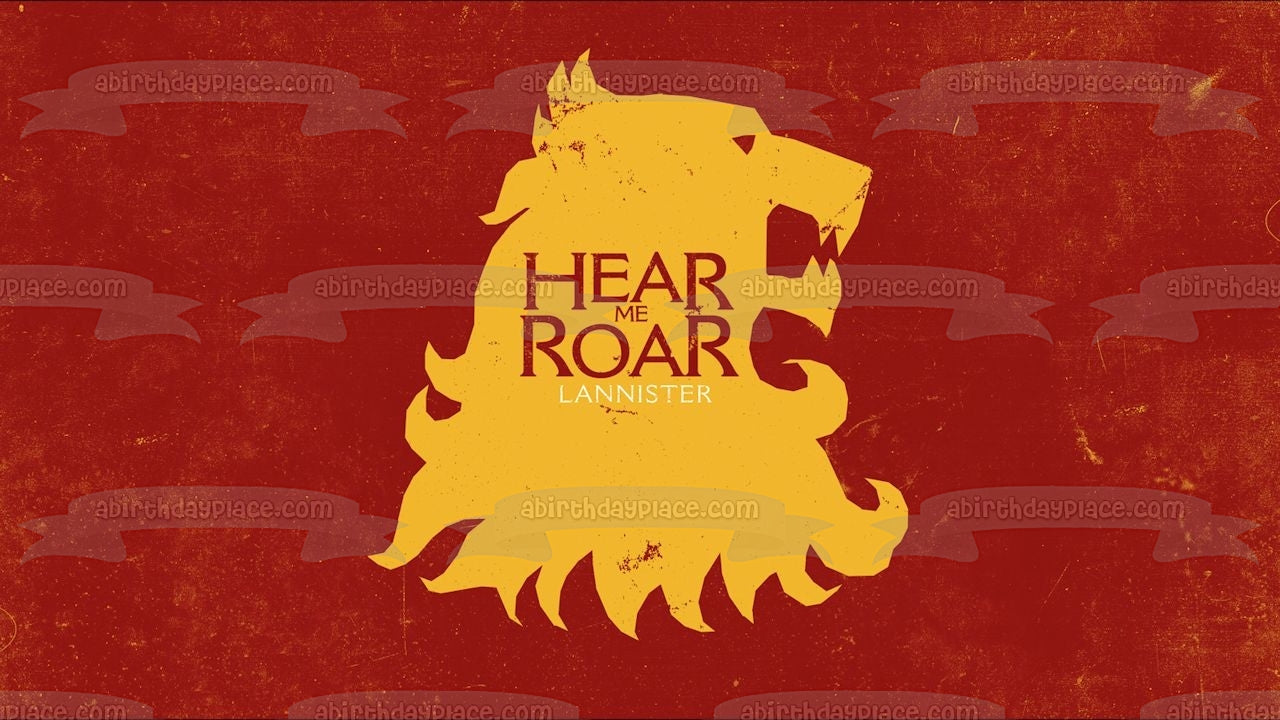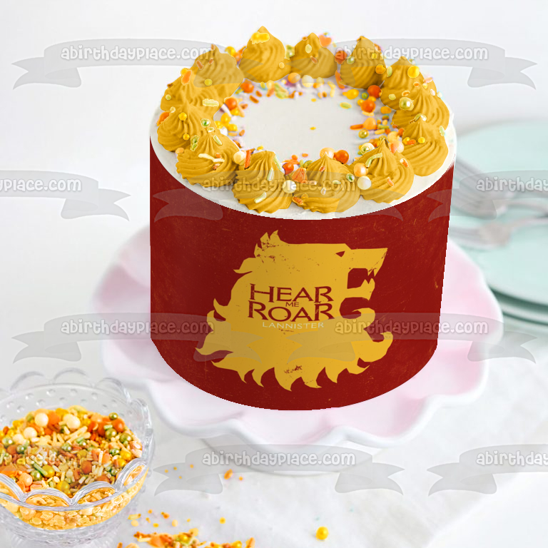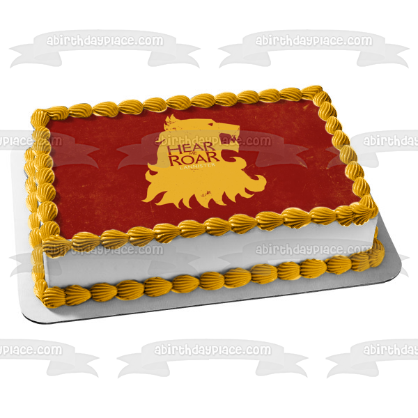 Decorate your Cake with this Game of Thrones themed Edible Cake Topper Image featuring the House Lannister Emblem and the words Hear Me Roar!