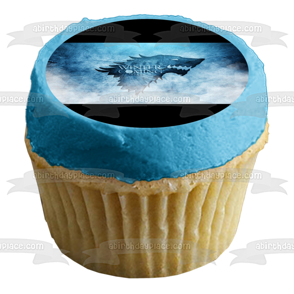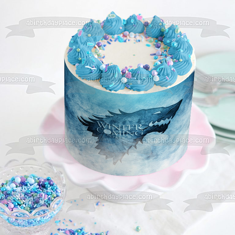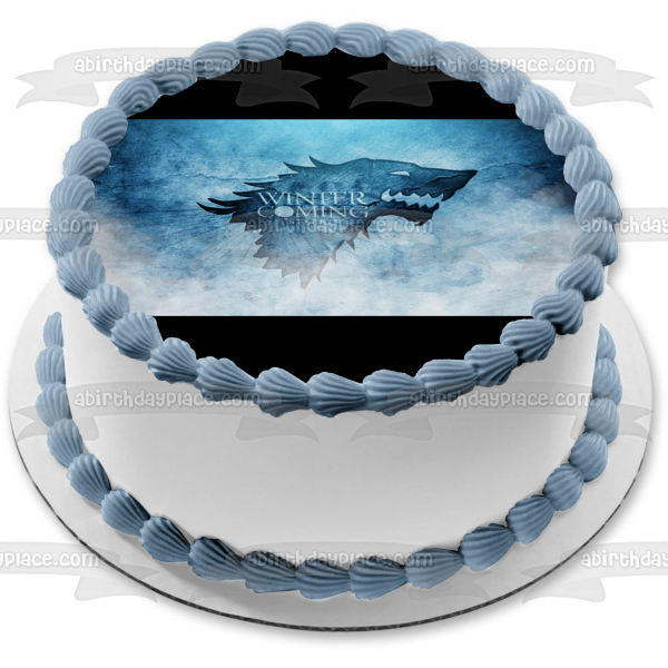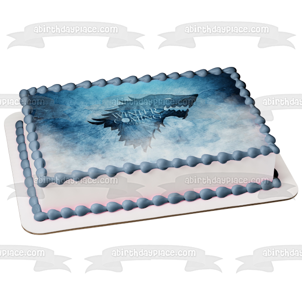 Decorate your Cake with this Game of Thrones themed Edible Cake Topper Image featuring the House Stark Emblem and the words Winter Is Coming!