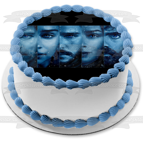 Decorate your Cake with this Game of Thrones themed Edible Cake Topper Image featuring Jon Snow, Daenerys Targaryen, Jamie Lannister, Tyrion Lannister and Cersei Lannister!