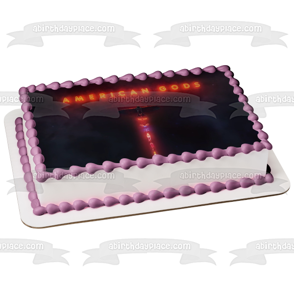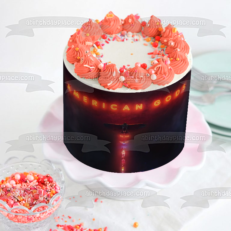 Decorate your Cake with this American Gods themed Edible Cake Topper Image featuring the Logo and Bird!